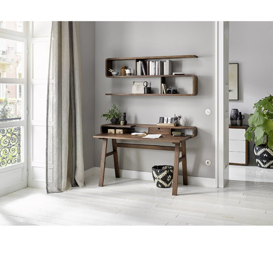 Massivholz Regalsystem in Nuss als Hängeregal mit Schiebetüren