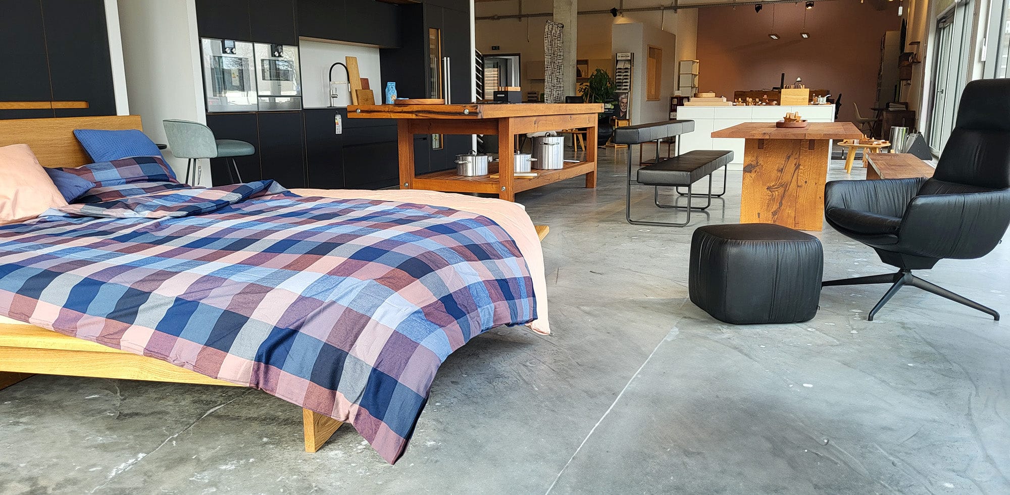 In unseren Ausstellungsräumen finden Sie Inspiration für die Bereiche Wohnen, Schlafen, Küche sowie Raum- und Möbeldesign.